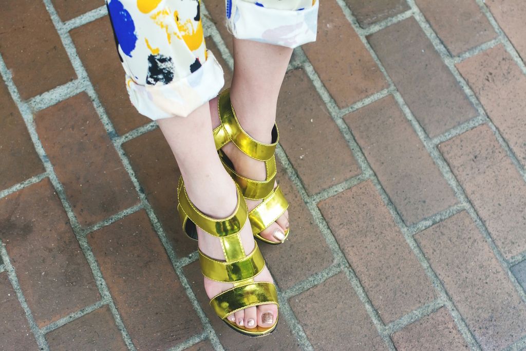 I wore this ensemble a few weeks ago at #ShoedazzleSaturday, a blogger brunch with my fellow bloggers. (I love blogger brunch! <3 <3 ) It's my kind of dressing up in a pair of pants. I first chose these awesome blush printed pants. Then, I thought it could be fun to style them with a color-blocking outfit, so I picked metallic sandals and vivid green bag to create the look while I kept the rest of it in basic colors since my hair color adds a few tons already.