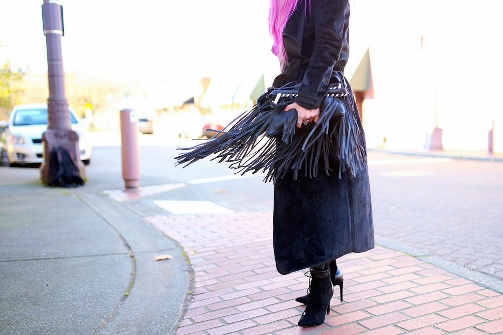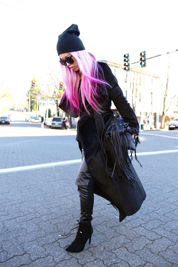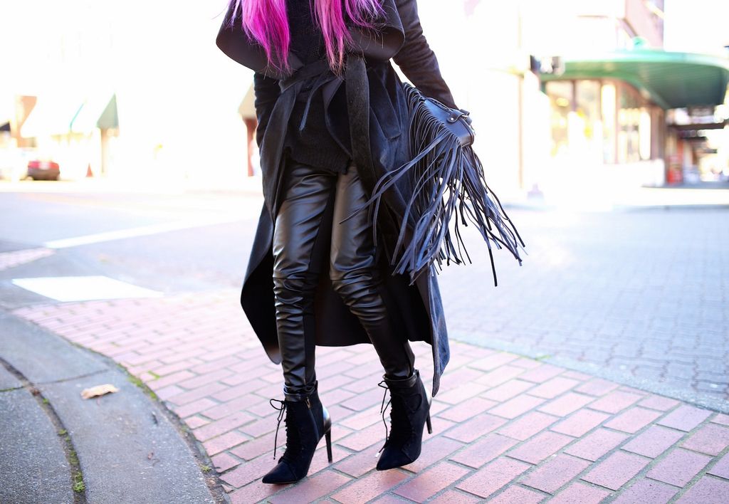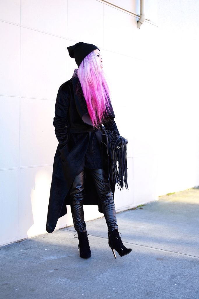 I bet you guys all so thrilled to spend your day for the crazy shopping, so I am going to keep today's post fairly short! I can't express how much I love this *ALL BLACK* outfit featuring my new black sleek long coat and super comfy leather-looking leggings from Boohoo! Because today's Black Friday, I thought to myself: "Let's just not wear any color!" Well, it worked! Please don't point out my lovely mermaid hair, though! lol I tried to focus on mixing a lot of textures into this look for a not-your-average all-black outfit! I can't get enough of how edgy yet chic the look turned out, and it got me dig and try more of "completely" all-noir look this winter!
