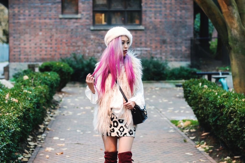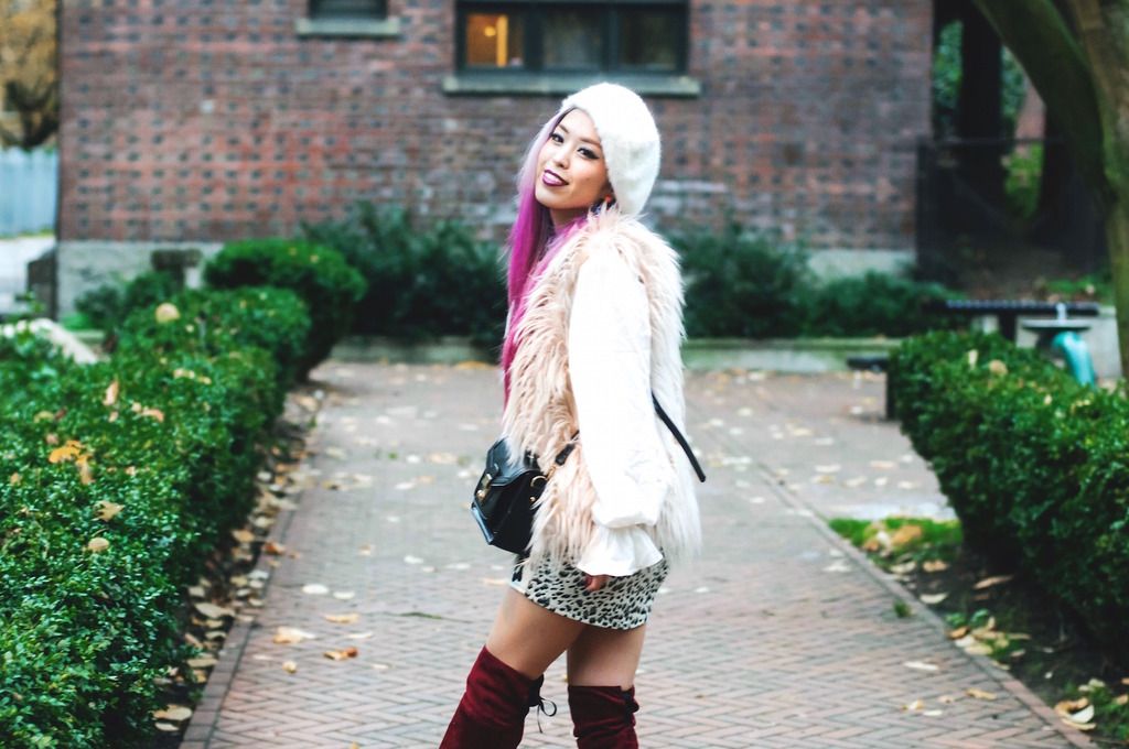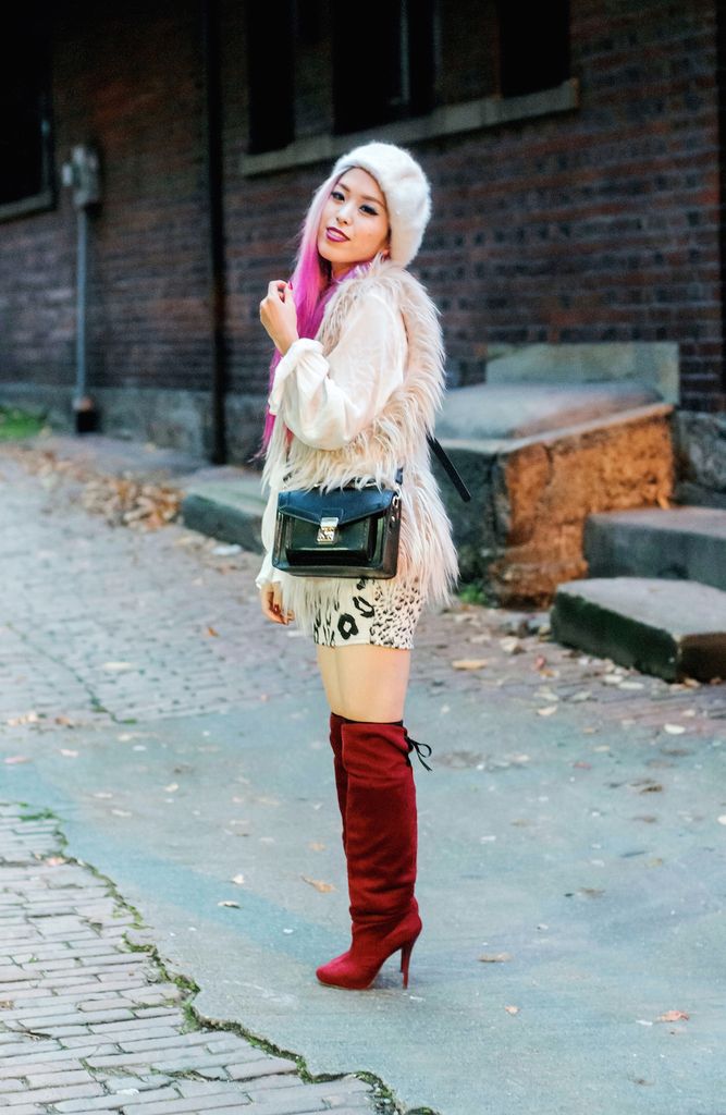 Now that this year only has one month left, isn't it crazy how fast time flies? Although I am still not getting used to this crisp air yet, I love the feeling of bundling all up in a cozy knit and chunky scarf! In addition to that, fur vests and OTK boots are one of my favorite winter items to wear! Fur vests are super versatile and are easy to layer with almost everything even outerwear like a biker jacket and duster coat. OTK boots are definitely seasonal must-haves because they can make your look effortlessly chic and fun, plus the layering options are endless! Don't forget that they are also great pieces for perfect holiday & party looks!